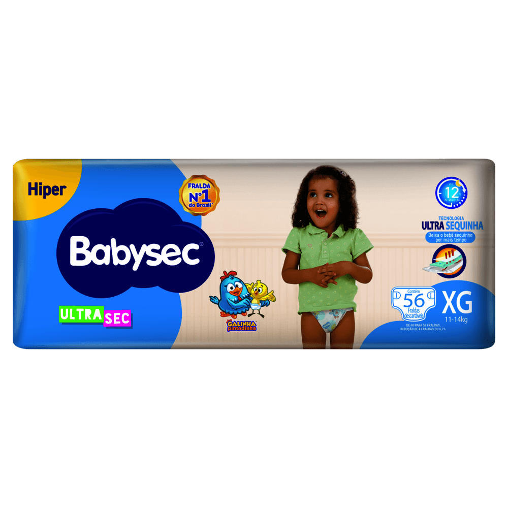 | Descrição Reduzida | A Fralda Infantil Babysec Ultrasec Galinha Pintadinha oferece ultra absorção e proteção por até 12h. Com fechos reajustáveis, barreiras antivazamento e cobertura suave, garante conforto e segurança para bebês de 11 a 14kg, além de estampa divertida. |